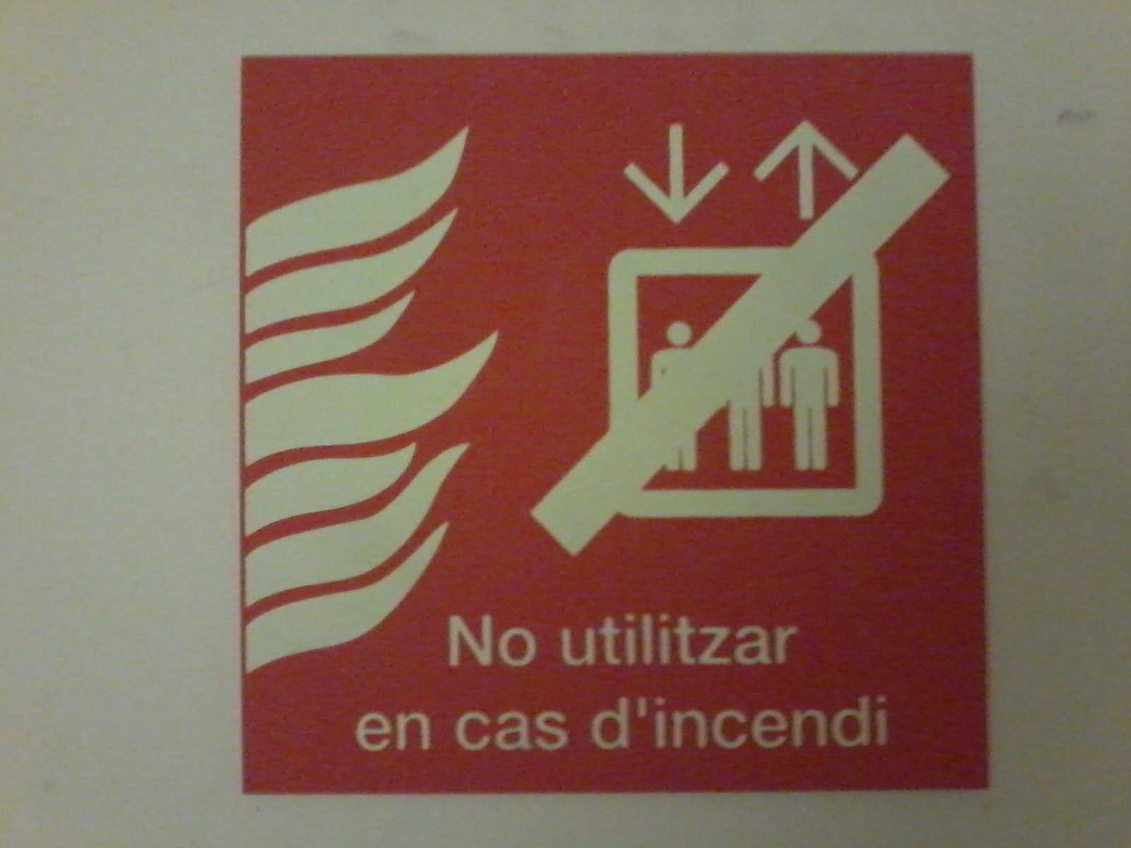 «No l’utilitzeu en cas d’incendi» o «No utilitzeu l’ascensor en cas d’incendi»