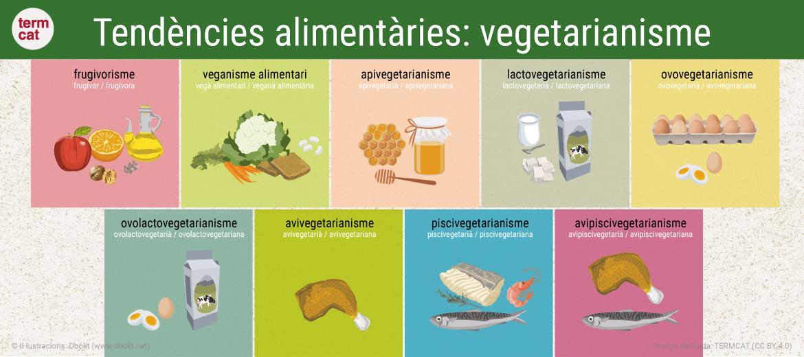 TERMCAT, CENTRE DE TERMINOLOGIA. Tendències alimentàries: vegetarianisme [en línia]. Barcelona: TERMCAT, Centre de Terminologia, 2021. 1 infografia. <https://www.termcat.cat/ca/recursos/productes-multimedia/tendencies-alimentaries-vegetarianisme>